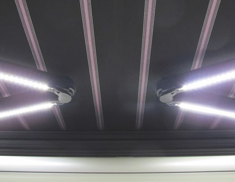 + plusieurs assortiments de tissus (polypropylène, polyester, acrylique teint dans la masse ou encore toile en fibres synthétiques avec micro-perforations)